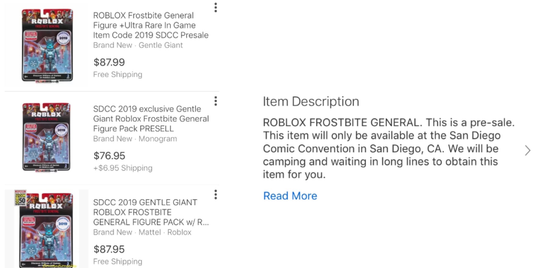New In Box Exclusive Sdcc 2019 Roblox Frostbite General W Code By