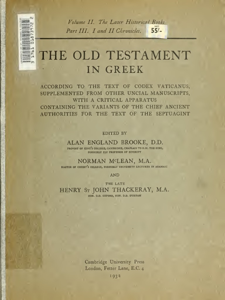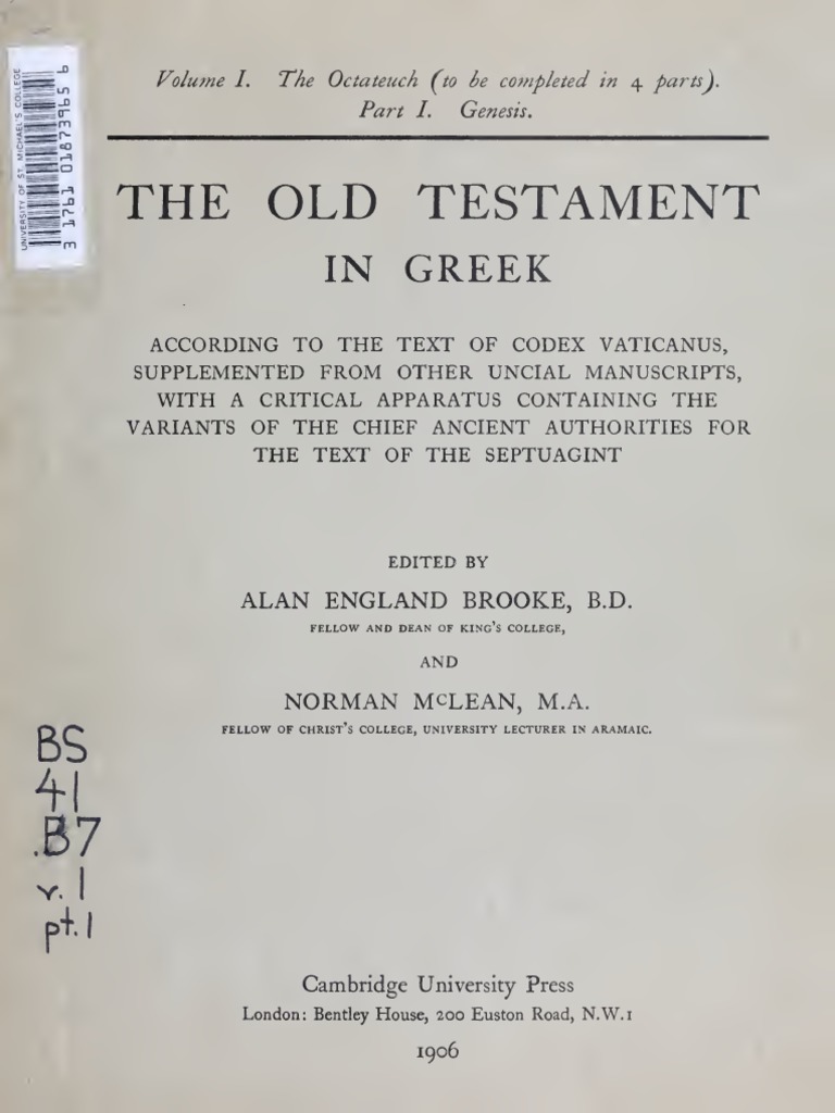 Booke Mclean Thackeray The Old Testament In Greek According To