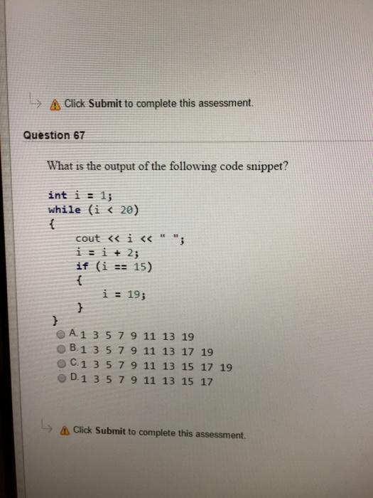 Solved What Is The Output Of The Following Code Snippet